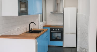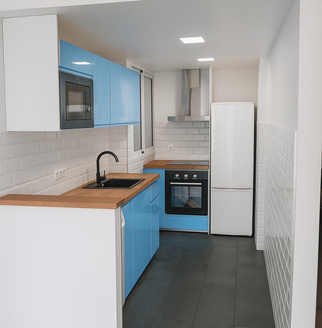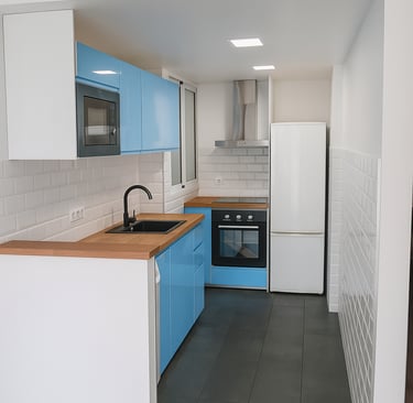En este proyecto realizamos una reforma completa de cocina y baño, transformando espacios antiguos y deteriorados en zonas modernas, luminosas y funcionales.