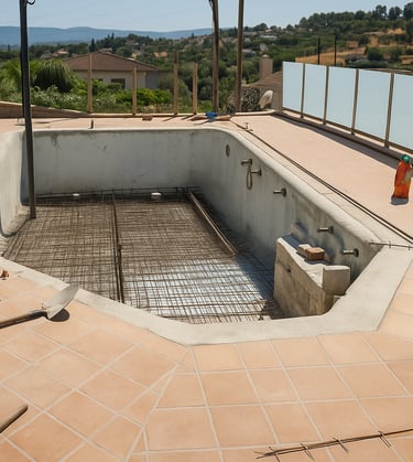 Elevación del fondo de la piscina con hormigón armado, para una mayor seguridad y comodidad del cliente.